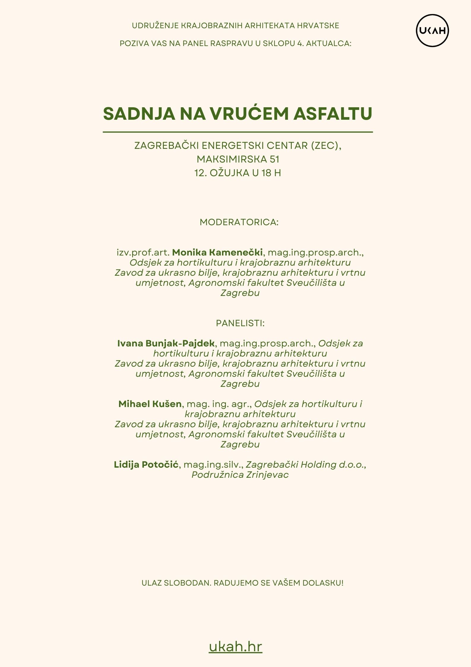 Moderatorica: izv.prof.art. Monika Kamenečki, mag.ing.prosp.arch. – Agronomski fakultet Sveučilišta u Zagrebu